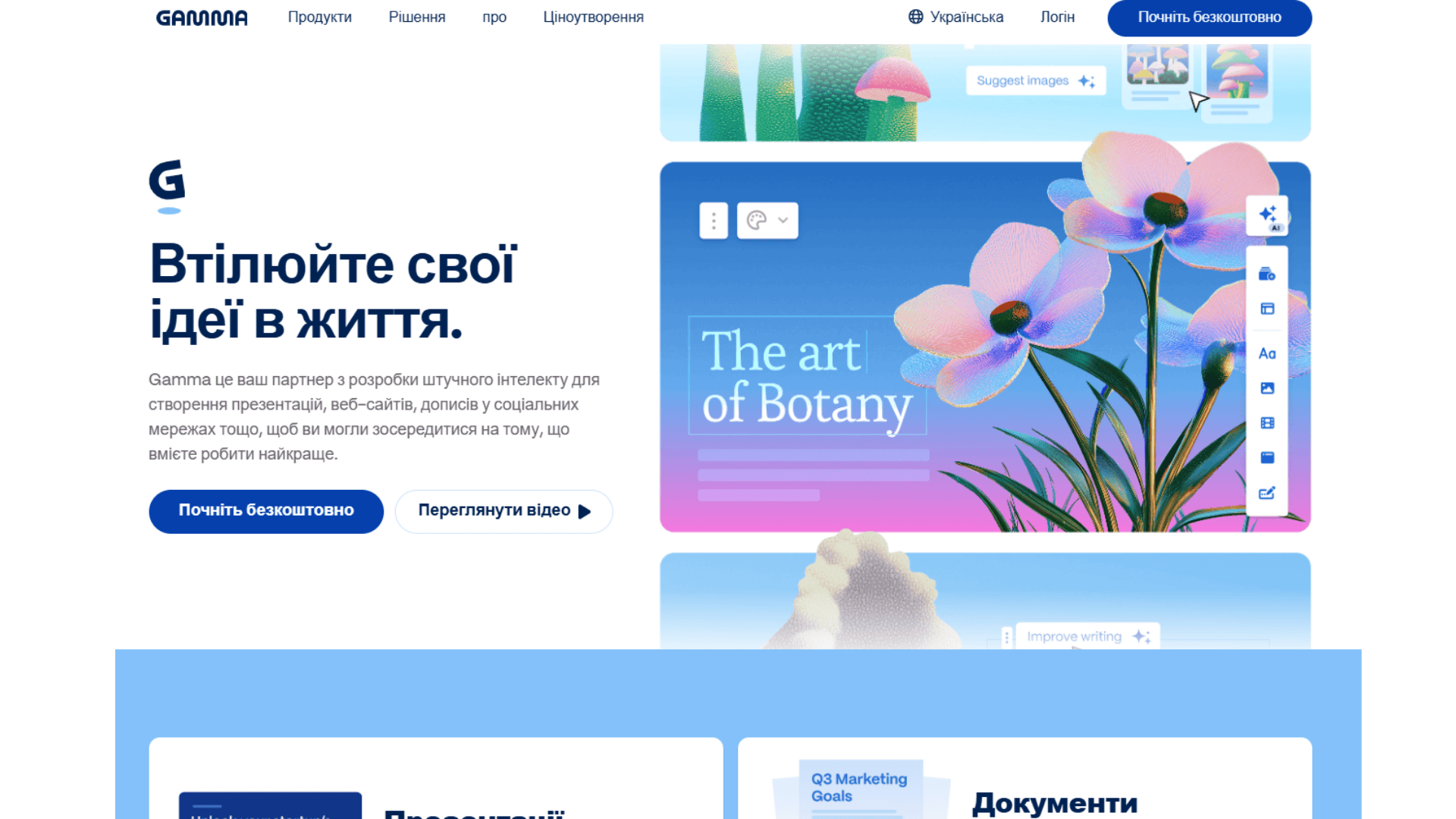 Gamma це ваш партнер з розробки штучного інтелекту для створення презентацій, веб-сайтів, дописів у соціальних мережах тощо, щоб ви могли зосередитися на тому, що вмієте робити найкраще.